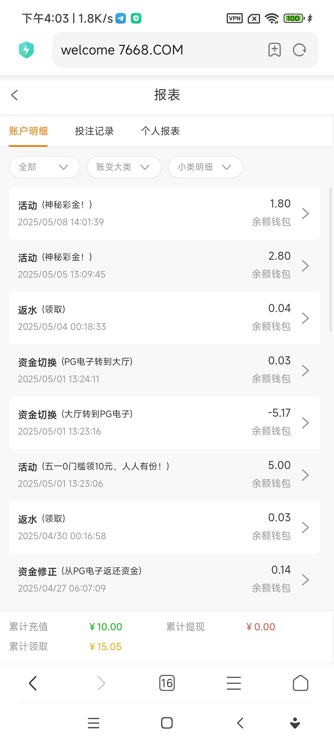 出款情况:自测(