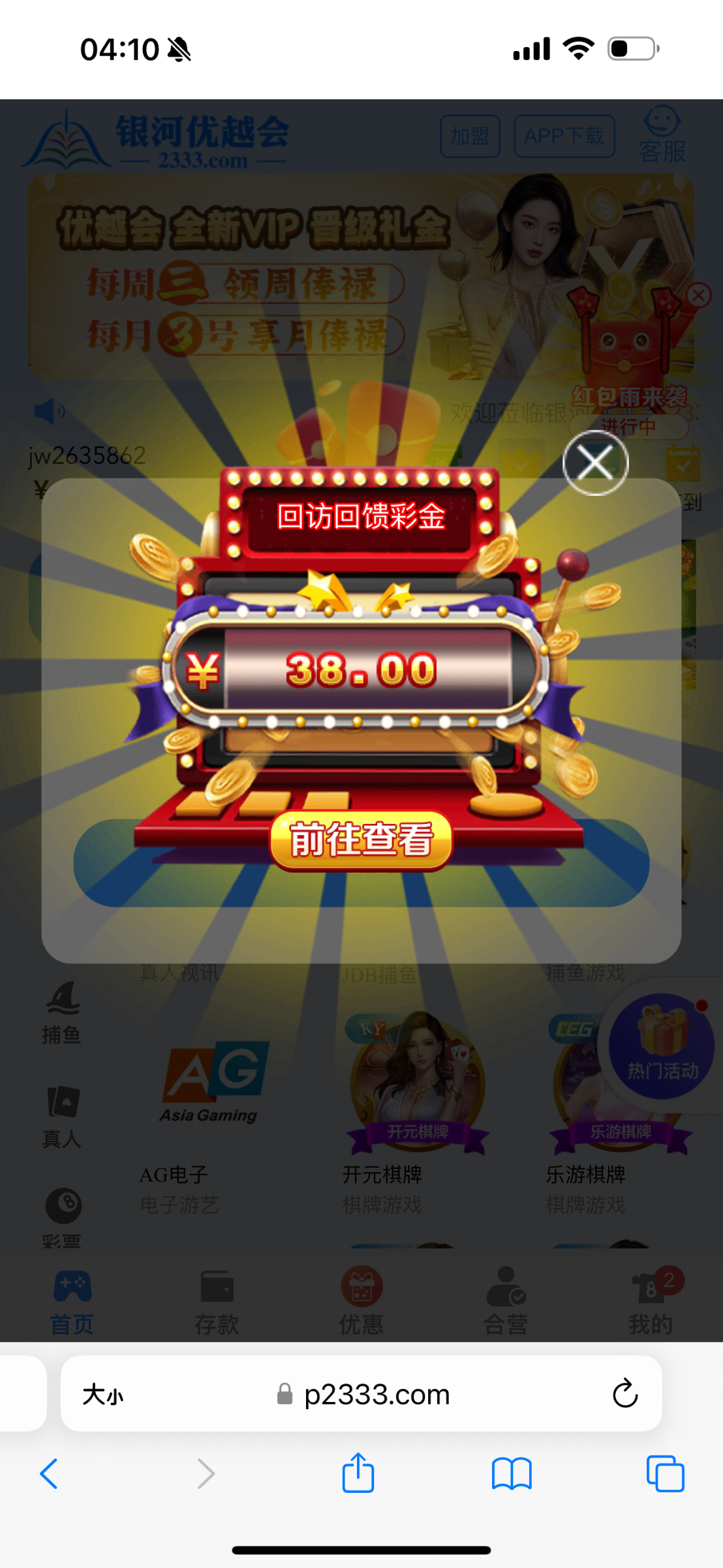 有号的登录上去看看,自动弹出来红包38,有就有没有就没有 网址2333.com