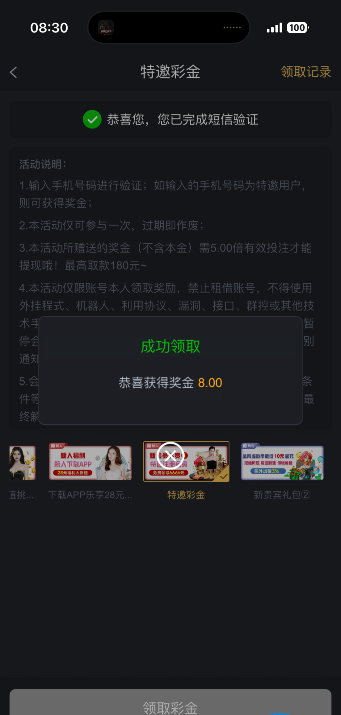 之前注册过账号不是特邀今天收到短信试了一下可以领取了出款自测!勿充值 短信链接http://skyzou.com/loob 官网链接5668.com
