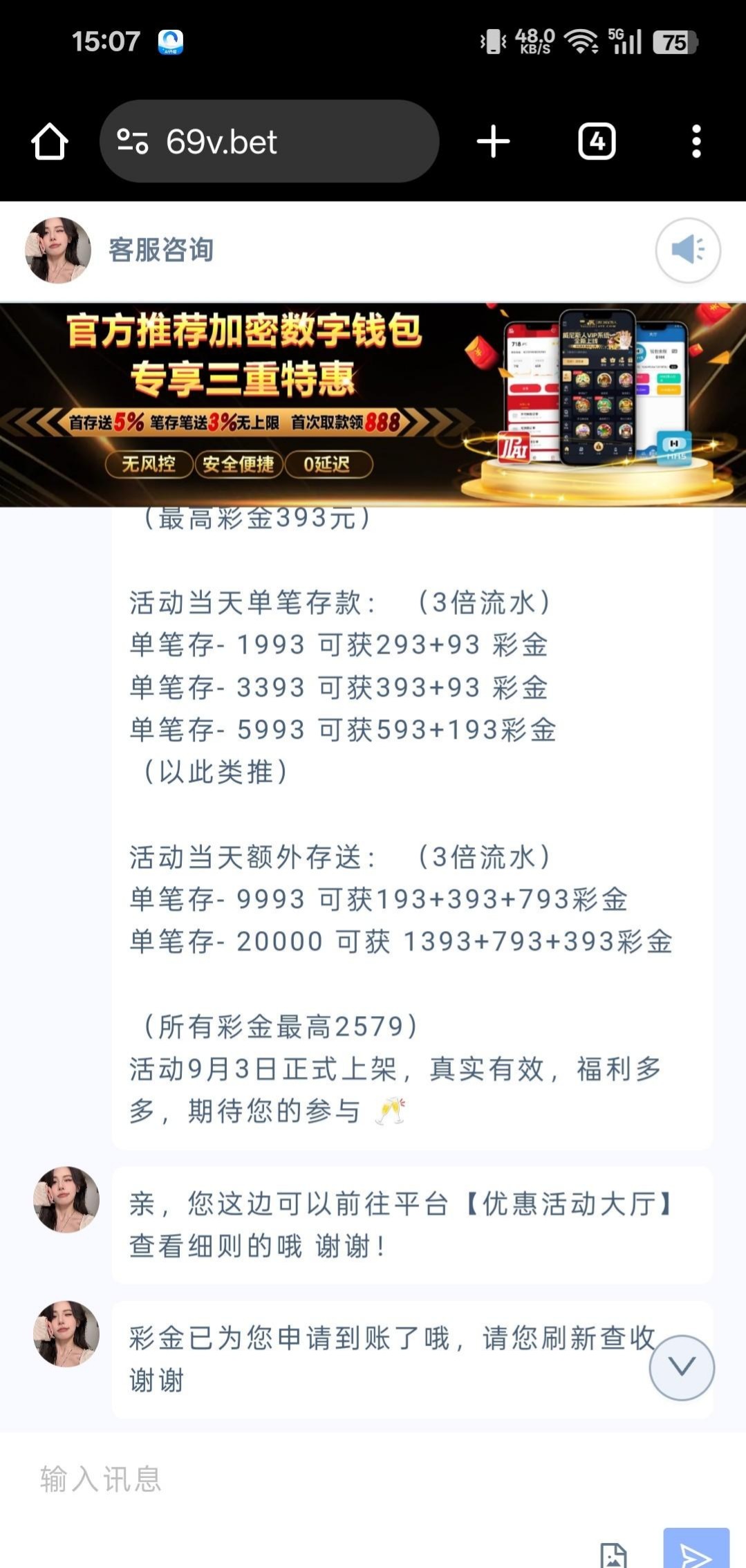 链接69v.com联系客服发账号领取电话彩金即可,我没充值过送了12
