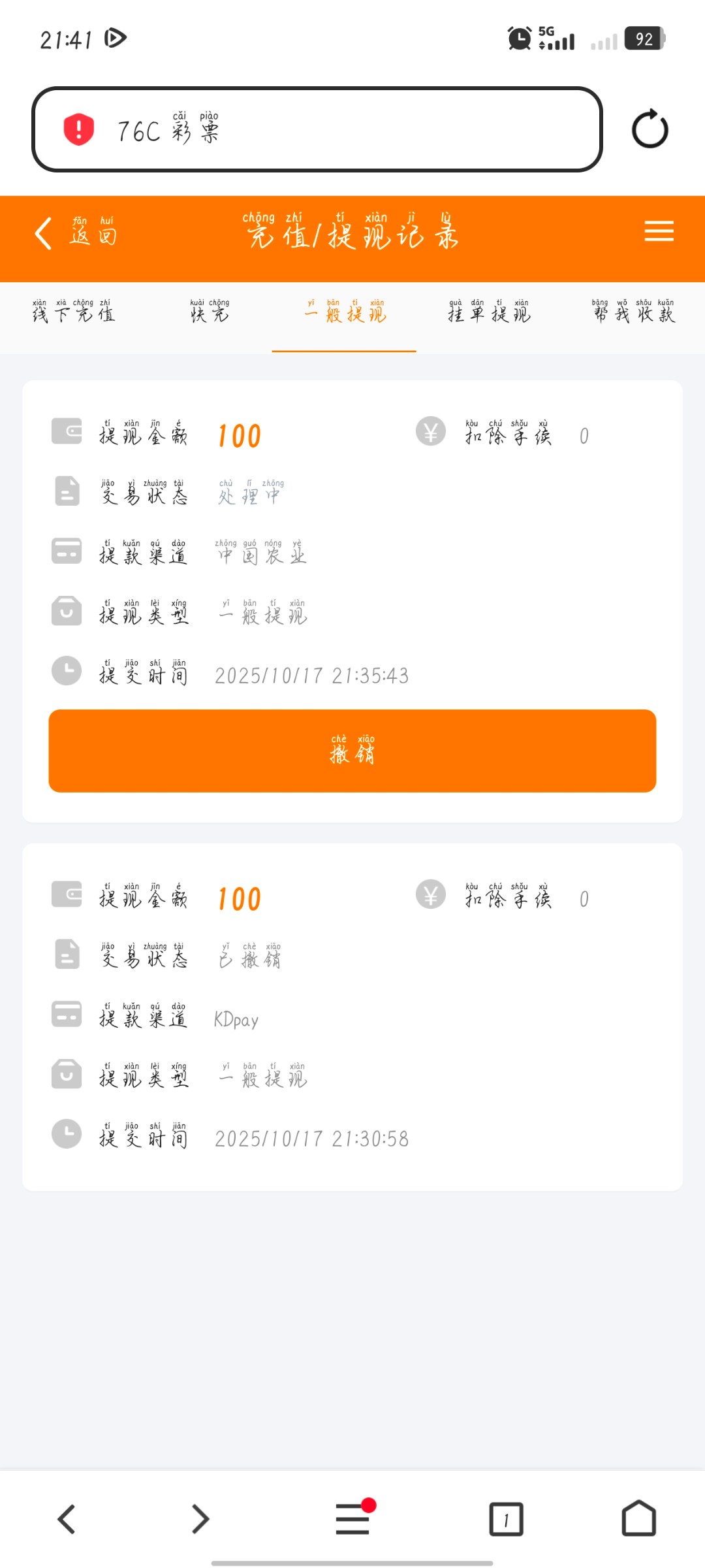 出款情况:自测(