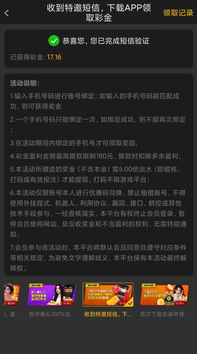 特邀自助彩金