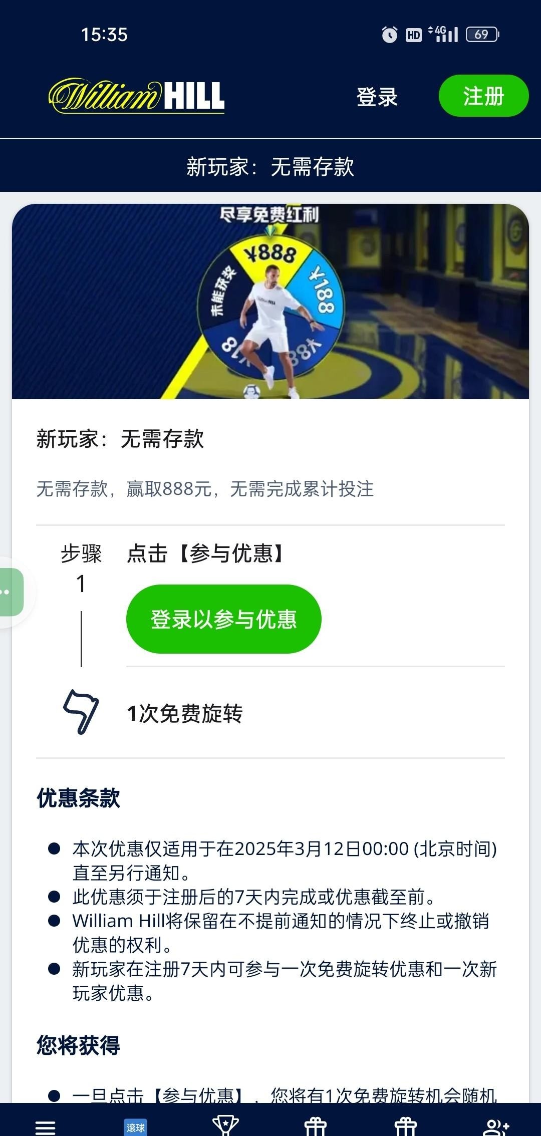 威廉希尔有免费活动,新老用户都可以去看看,网址https://www.williamhill7679.com:9001/zh-cn/
