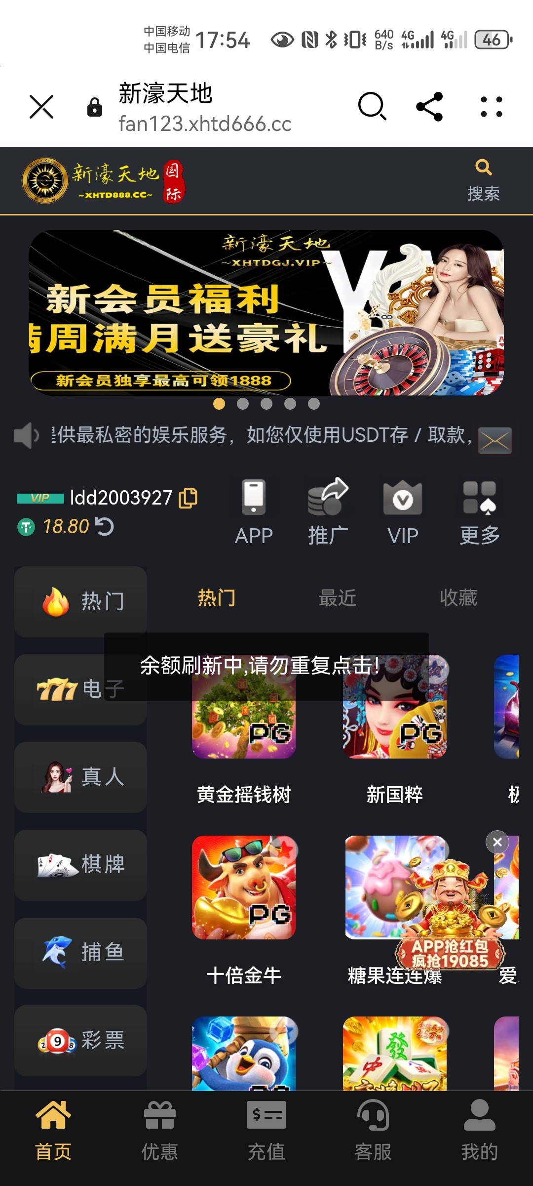 直接和客服说新人18 他会让你转发5个群,飞机没有群的你随便搜索群名字就有不禁言的群,转发五分钟联系客服就送了 最高最低100u打出来的记得截图反馈