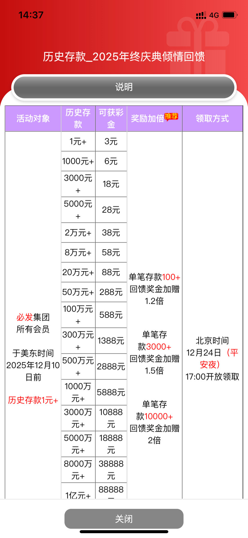 圣诞福利有两个 分别是历史充值彩金只要充值过就有