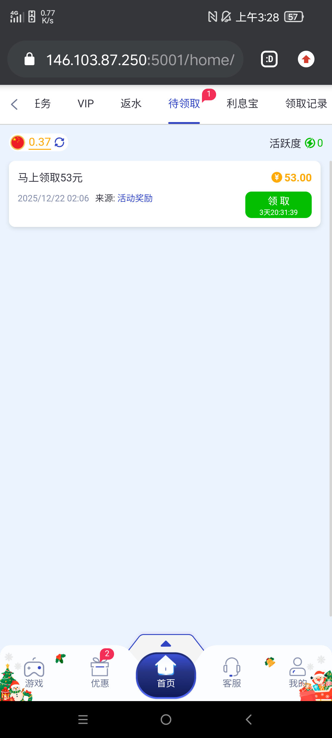 053星际领53块钱 我也不知道是什么活动 老哥们可以去看看 没有也不要骂人