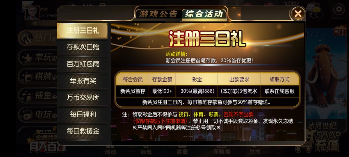 首存前三天每日首笔存送30%,限制电子棋牌,3倍水